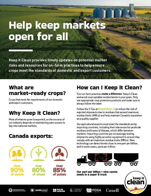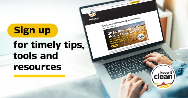 Share market-ready best practices using Keep it Clean resources designed to support crop advisers, ag retailers and industry partners. Don’t see the resource you’re looking for? Contact info@keepitclean.ca to inquire about materials.